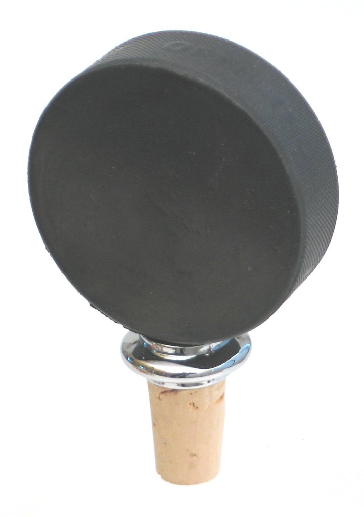 Real professional ice Hockey Puck bottle stopper with natural cork comes in a designer wooden box. Cork can be easily replaced if broken, just unscrew the cork and replace it with a new one. You can also add your own cork to fit any size bottle. Size of the bottle stopper is approximately 5" long and 3" wide.