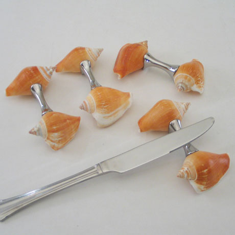 Set of four Knifes Rest with Natural Canariums Shells. Knifes Rest are approximately 4" long and are packed in high-end gift box.